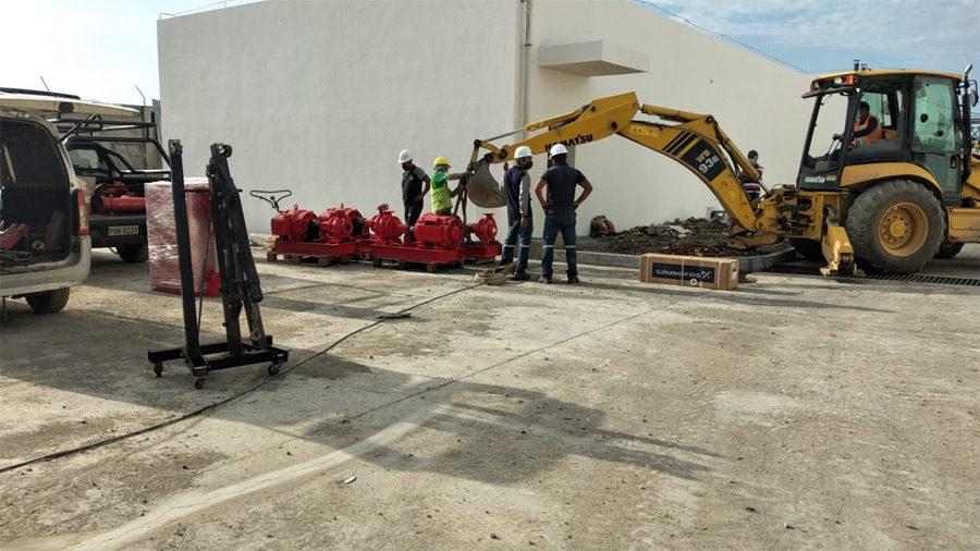 El proyecto incluyó la instalación de equipos en el cuarto de bombas de los Sistemas Contra incendio, los cuales quedaron instalados y probados para entregar agua a toda la red hídrica de cajetines y rociadores de combate contra incendio.